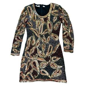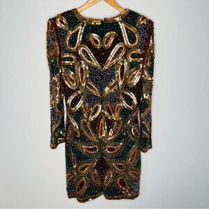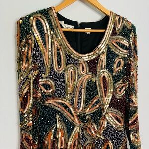 Tags: vintage, VTG, vintage formal dress, silk, sequins, sequined, beaded, beading, beads, bling, blingy, heavy, intricate, art, artsy, art to wear, formal, Bollywood, event, evening, cocktail, black tie, dance, party, rare fine, unique, colorful, conversation piece, gorgeous, holiday, cruise, vacation, dressy, dress up, Halloween, costume, 90s, 80s, mob wife, luxe, luxurious, luxury, elegant, classic, classy, fancy, sparkly, sparkles, shiny, wedding guest, theme party, winter formal, fall