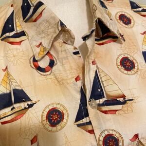 VINTAGE Guayaberass Nautical Button Up Casual Shirt short sleeve unknown size