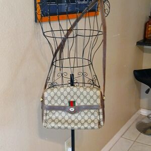 VINTAGE Gucci Cream and Brown Messenger Bag with Signature Monogram
