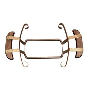 VINTAGE HAMMERED COPPER CASSEROLE PAN HOLDER WITH WOOD HANDLES