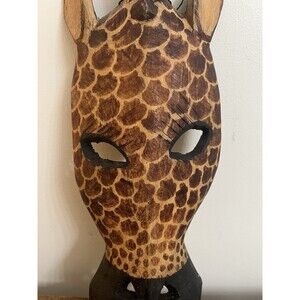 VINTAGE HAND CARVED WOOD GIRAFFE HEAD TRIBAL MASK WALL ART Approximately 15”