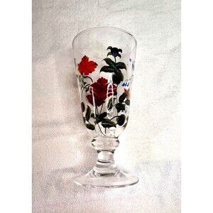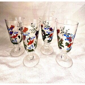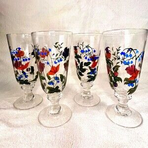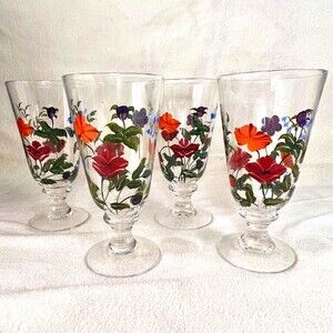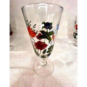 VINTAGE HAND PAINTED Enamel 8” Goblets Glasses Wine Water Iced Tea Flowers