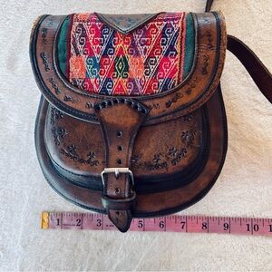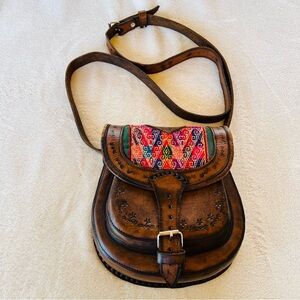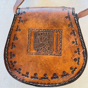 VINTAGE HAND TOOLED LEATHER HANDMADE EMBROIDERED STURDY CROSSBODY SADDLE BAG EUC