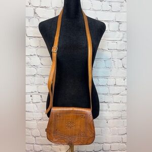 VINTAGE HANDCRAFTED PERFORATED LEATHER CROSSBODY SHOULDER SADDLE BAG WESTERN