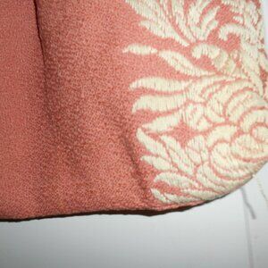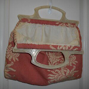 VINTAGE HANDMADE CORAL PINK FLORAL TAPESTRY HANDBAG PURSE