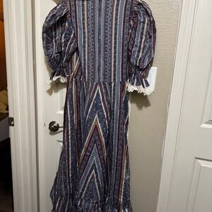 Elegant women's dress featuring a multicolor striped pattern. Perfect for any occasion. Best first a small medium.