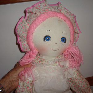 VINTAGE HANDMADE RAG GIRL DOLL, CLOTH SOFT BODY, FULLY DRESSED, 24 INCHES