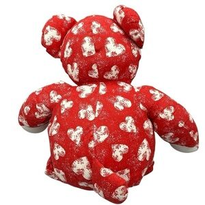 VINTAGE HANDMADE TEDDY BEAR RED WHITE HEART PRINT VALENTINE LOVEY COLLECTIBLE