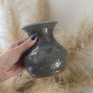 This unique art pottery vase is hand-crafted and artist signed.