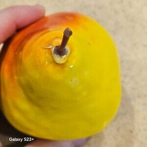 This is an AUTHENTIC Italian Hand-painted Ceramic Yellow Pear. Done in a LOVELY yellow color. PERFECT addition to your fruit basket, display, kitchen, or whatever you desire. It comes from a non-smoking home. It measures approximately 4 1/4"L (including stem) by 2 3/4"W by 2 1/2" deep. This is hand-painted ceramic majolica and glazed. This was made and purchased in Vietri, Italy by myself MANY years ago. There is no hallmark. This is pre-owned.