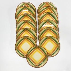 VINTAGE HAND-PAINTED VERNONWARE - HOMESPUN - (SET OF 13) 6 1/2" SAUCER/PLATE