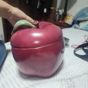 VINTAGE HARRY & DAVID EUC CERAMIC RED APPLE COOKIE JAR WITH LIDS