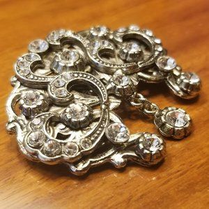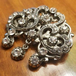PRICE IS FIRM. This is an AUTHENTIC Siman Tu Brooch. These brooch are VERY RARE! This Haute Couture brooch is sure to dress up any outfit!! This brooch is composed of Swarovski crystals. The back is signed, "Siman Tu." Brooch is done in a silver-colored metal. The brooch has a LOVELY tiara crown design and VERY elegant for a night out on the town. This comes from a non-smoking home. This measures 1 1/2" L (from top center to bottom center crystal drop) by 1 3/4"W (at widest point.) No missing crystals. The brooch is pre-owned. Pictures of actual item.