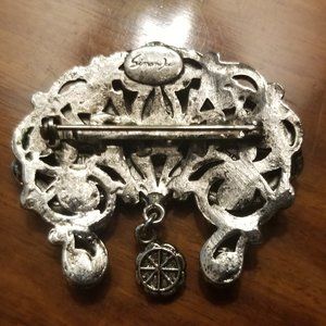 VINTAGE HAUTE COUTURE SIMAN TU TIARA CROWN CRYSTAL HOLIDAY EVENING BROOCH PIN