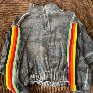 VINTAGE HAVANA Crop Camo Rainbow Stripe Sweatshirt Size M