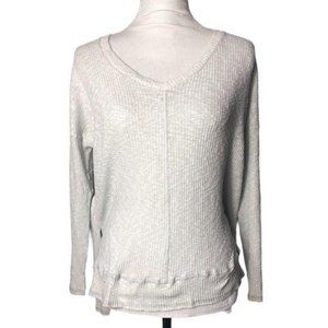 VINTAGE HAVANA Long Sleeve V-Neck Textured Gray Small Womens Cute Neutral