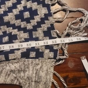 VINTAGE HAVANA TRIBAL FRINGE DUSTER NAVY & GRAY, SZ LARGE