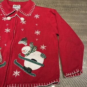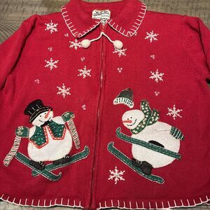 VINTAGE HEIRLOOM COLLECTIBL ugly CHRISTMAS SWEATER Cardigan SNOWMEN Sz XL Zip Up