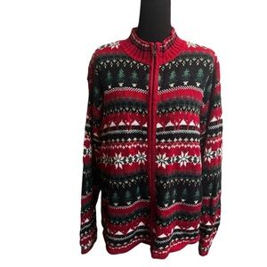 VINTAGE HEIRLOOM Fair Isle Women’s SZ LG Holiday Full Zip Sweater Cardigan EUC