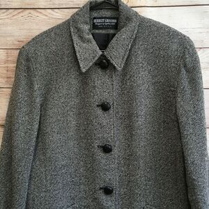 EXCELLENT CONDITION VINTAGE HERBERT GROSSMAN PANTSUIT IN BLACK AND WHITE TWEED