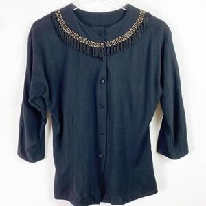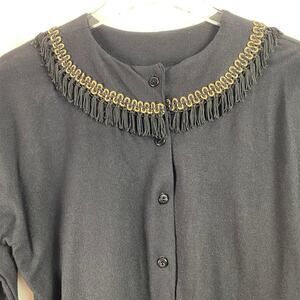 Black Fringe Trim Button Down Cardigan by Herlestan