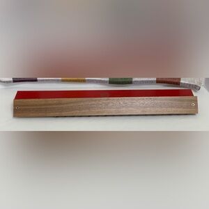 Vintage Hickok wall mount wood and chrome tie rack in original box. Appears unused. Measures approximately 18 3/4” x 1 3/4”. Box in very good condition, tie rack in excellent condition. Also great for belts or scarves.