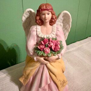 VINTAGE HOMCO #8806 Home Interiors Porcelain Angel With Roses Basket Figurine