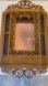 Elegant faux wicker wall shelf with intricate scroll design. Perfect for displaying decor. Broken round center piece at the very bottom. Includes a peacock chair photo in the shadow box.