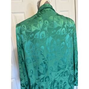 VINTAGE HONG KONG CHINESE SILK Green Pattern Flare Maxi Skirt Blazer Pockets Lux