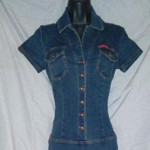 VINTAGE HOT KISS STRETCH DENIM BUTTON UP JUMPSUIT