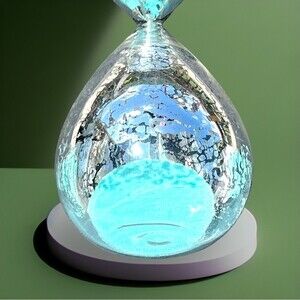 VINTAGE HOUR GLASS BLUE SAND- UNIQUE SILVER ETCHING DETAIL Caribbean Ocean Blue