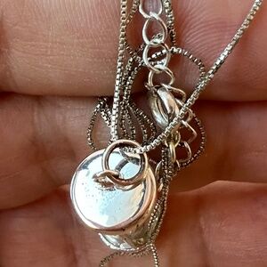 VERY NICE HOURGLASS NECKLACE IN SILVER TONE METAL. THE PENDANT APPROXIMATELY 20MM LONG, CHAIN IS APPROXIMATELY 18”LONG, WITH APPROXIMATELY 2” EXTENDER BY THE LOCK.
