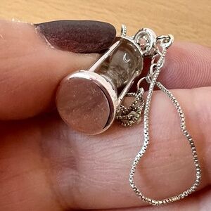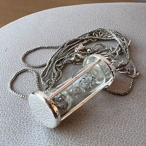 VINTAGE HOURGLASS SAND CLOCK PENDANT CHAIN NECKLACE SILVERTONE METAL VERY UNIQUE