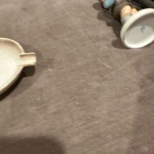 This HIMMEL GIRL IS GREAT VINTAGE CONDITION WITH SOME LITTLE HAIR LINES ON THE DISH. SHE IS 7” WIDE ACROSS THE STATUE INCLUDED WITH THE DISH AND 3 1/2” IN HIGH.