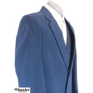 VINTAGE Haggar 3 Piece Suit Mens Navy Blue Pinstripe 2 Btn 44R Flat Fronts 38" W