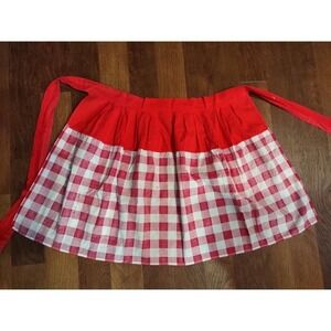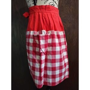 VINTAGE Half Apron Gingham Red & White Checkered Check Gingham Tie Pockets FLAW