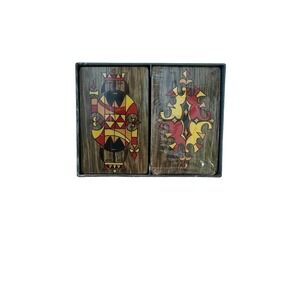 Set of two decks of cards still in packaging. The plastic cover has some scuffs on it otherwise in good condition.