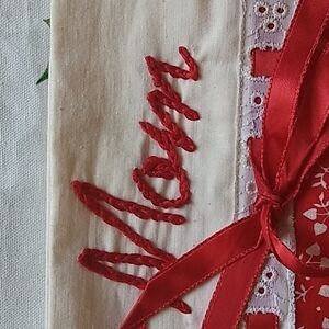 VINTAGE Hand Crafted Calico Christmas Stocking "Mom" Red