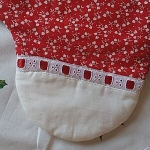 - Lace trim with red ribbon
