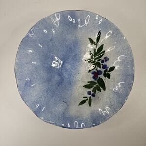 This Vintage Hand Made Flower Pattern Fused Glass Textured Bowl Dish with a ruffled edge is a unique and decorative piece for any home. The bowl features a beautiful red and green floral pattern, a glossy finish, and a contemporary style. Handmade with a fused glass production technique in the late 20th century, this bowl is perfect for all occasions and adds a touch of artistry to any table setting. Made with high-quality glass, this one-of-a-kind bowl is a charming addition to any collection.