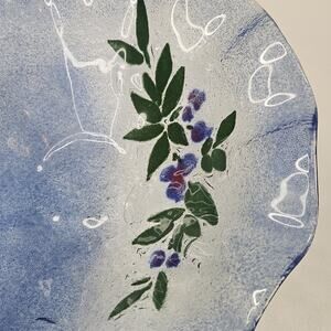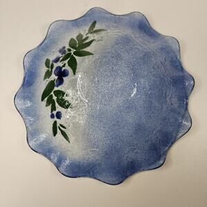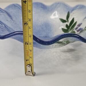 VINTAGE Hand Made Flower Pattern Fused Glass Textured Bowl Dish Ruffled Edge
