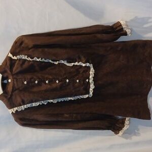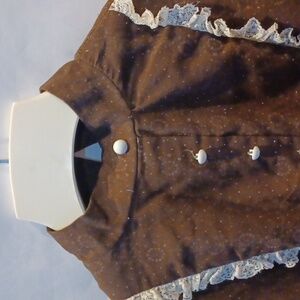 VINTAGE Handmade Lace trim Brown Mini Dress Metal Zipper Small, Very Jan Brady