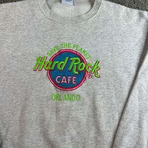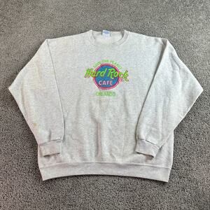 VINTAGE Hard Rock Cafe Sweatshirt Mens XL Orlando Gray Neon Embroidered 90s