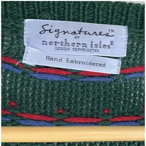 This is your literal cottage core moment: a hand embroidered, Signature by Northern Isles brand, oversized cardigan with patterns of hearts, stars, a flag, and an actual cottage! It’s so cool. Ok, not the cottage core style, but great Americana.