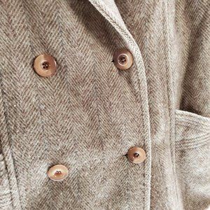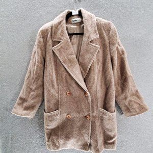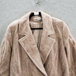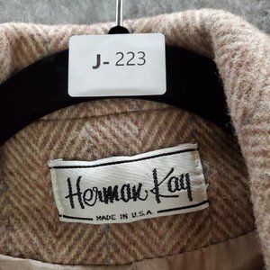 VINTAGE Herman Kay Women Pea Coat Large Beige 100% Pure Wool Button Up READ