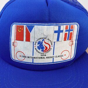 VINTAGE Hockey Cap 1986 Anchorage ALASKA Blue Classic Hat Trucker International