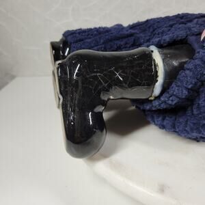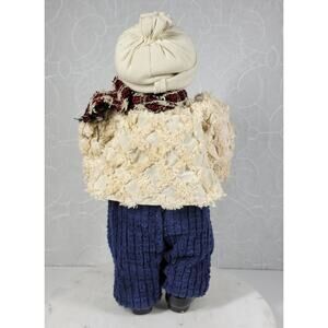 VINTAGE Porcelain Snowman Figurine 16" White Blue Fluffy Rustic Folk Art Style