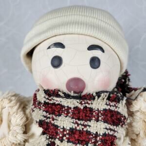 VINTAGE Holiday Snowman 16" White Hand Painted Porcelain Winter Standing Doll