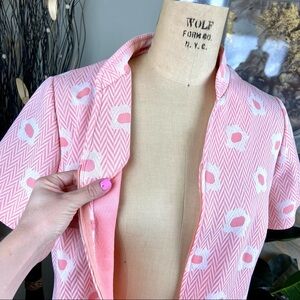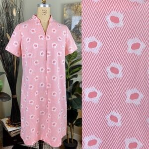VINTAGE House Dress House Coat 60s Mod Sherbet Peachy Pink Floral Pattern Midi