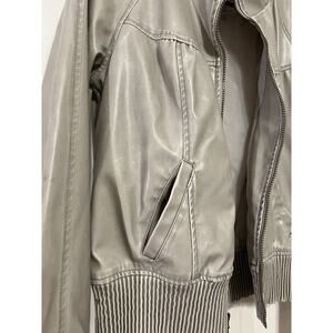 Very nice quality vintage HYDRAULIC brand jacket. Really cool faux leather jacket in a gorgeous Champagne Metallic/Silver Metallic color. Size Large. Unique jacket with "pleated" cuffs, and on bottom and neck of jacket. Good vintage condition, no flaws, no stains, all lining material is intact. Very Clean. Cuffs are clean and free of wear.